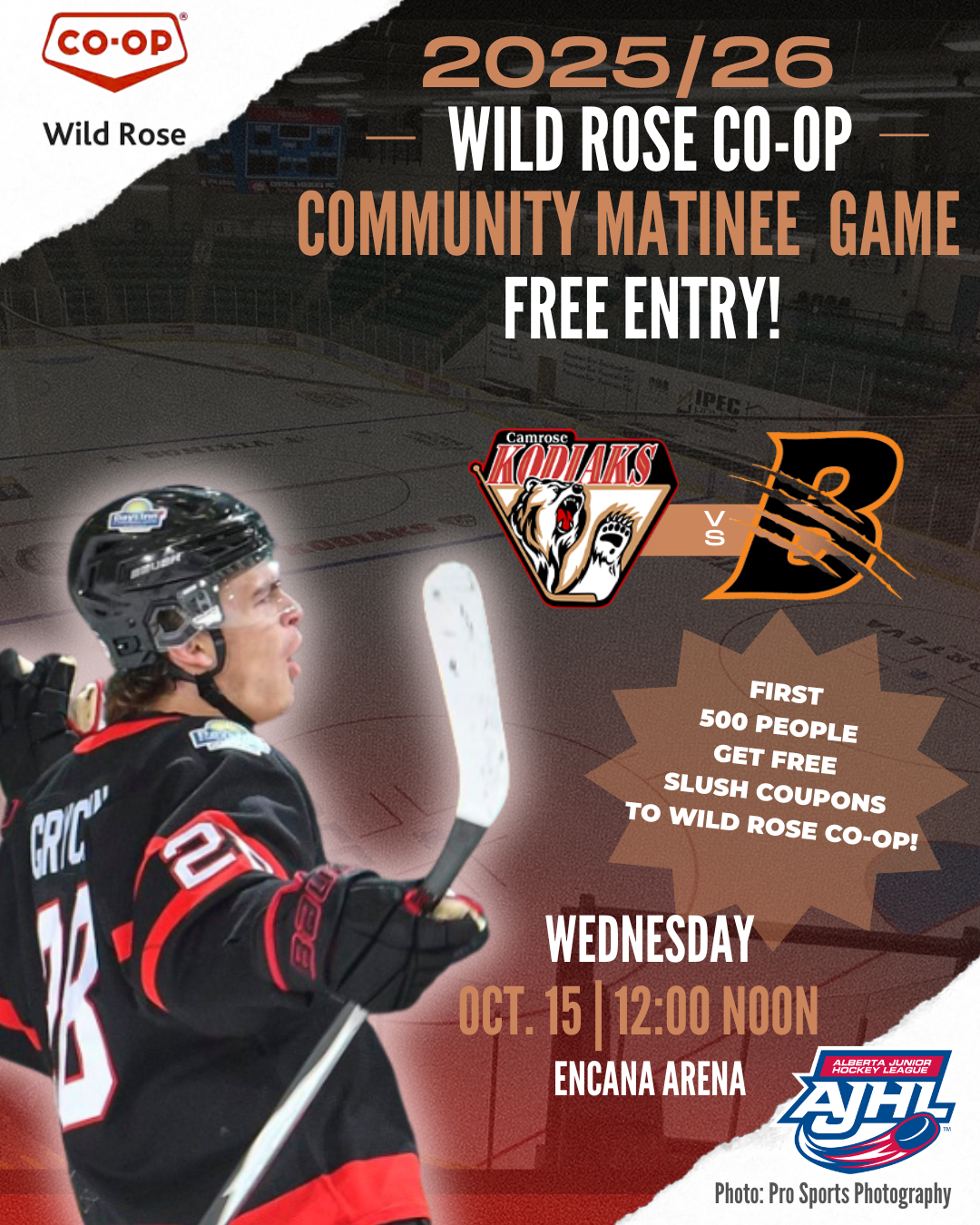 In lieu of “Hockey Hookey” this season, the Camrose Kodiaks and Wild Rose Co-op wanted to open the doors to the community of Camrose to come cheer on the Kodiaks in an afternoon match-up vs the Bobcats.